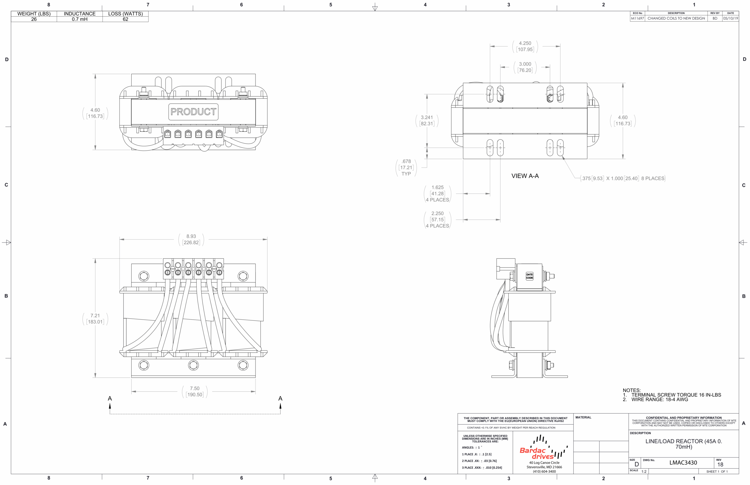 LMAC3430 | 3-ph Reactor, 30HP, 45 Amps, 0.7mH
